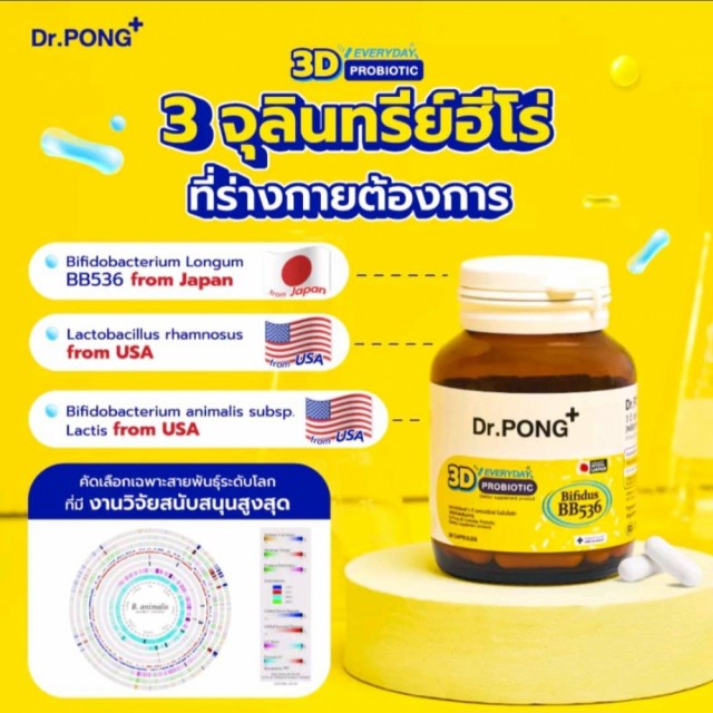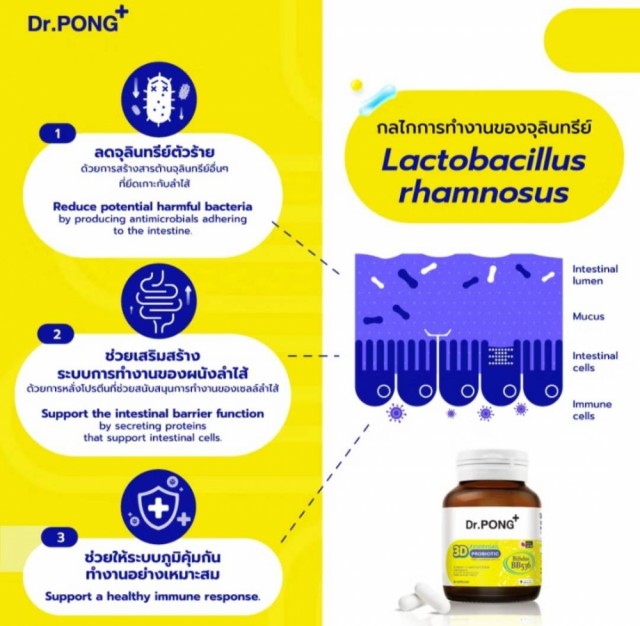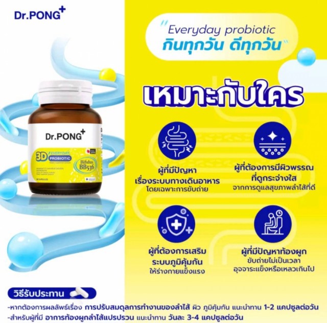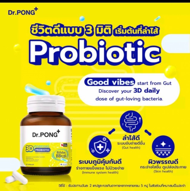 Inneholder tre gunstige probiotika for tarmhelse, immunhelse og hudhelse, støttet av kliniske studier.