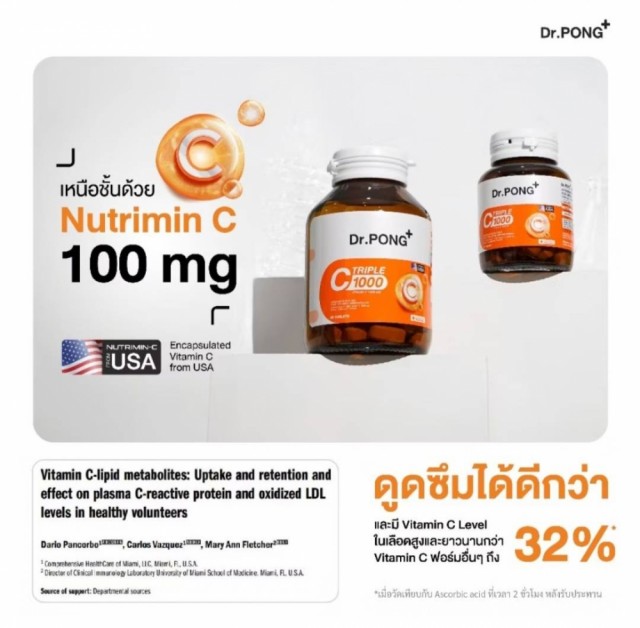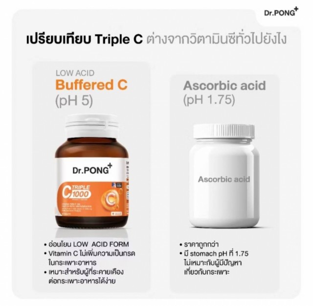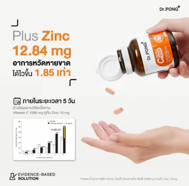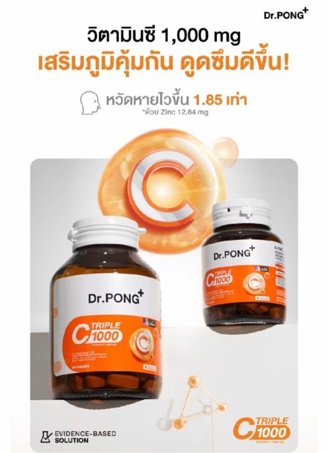 Dr. Pong Triple C 1000 mg kombinerer 3 typer C-vitamin og Sink.
